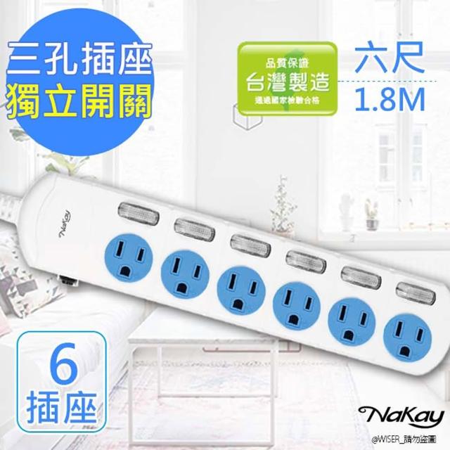 生活家電推薦 【NAKAY】6呎 六開六插安全延長線 NY166-6(台灣製造)